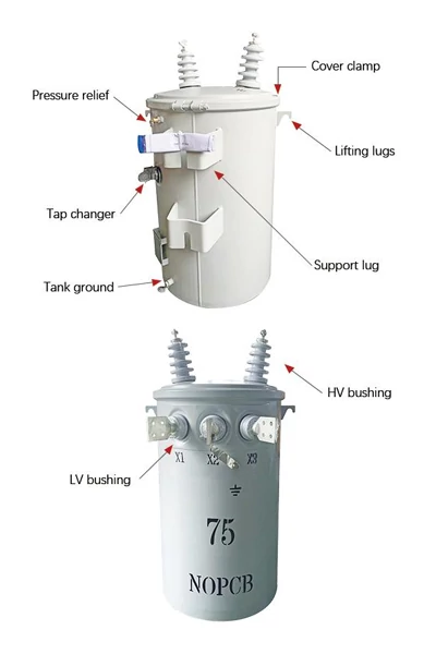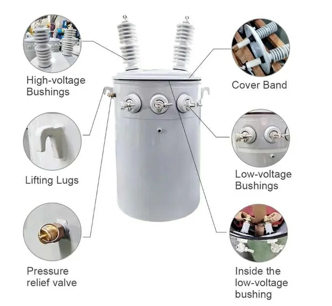 1. Core Assembly: Composed of the iron core, high/low voltage windings, and insulating oil. It is responsible for stepping down high voltage to low voltage (e.g., 10kV to 220V). The insulating oil serves the dual purpose of providing insulation and cooling.